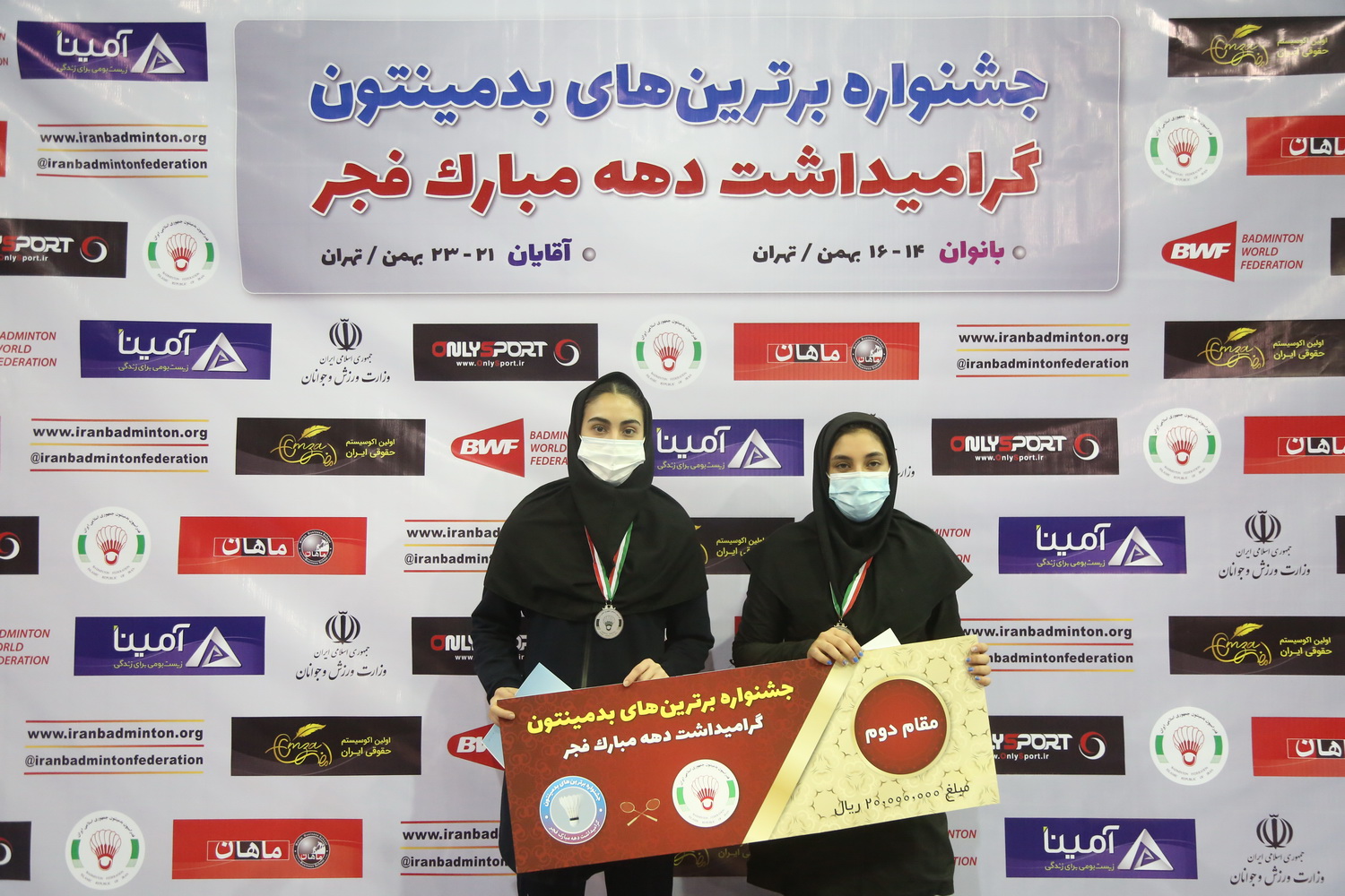 همچنین در مسابقات دوبل، تیم دو نفره نازنین زمانی و یگانه تفرشی به مقام نخست رسیدند.