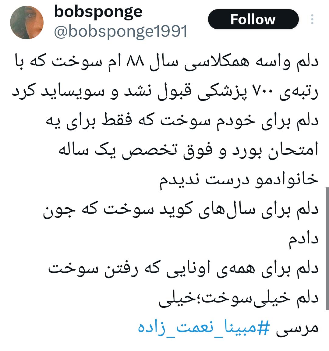واضح است که نه در مورد مبینا نعمتزاده و نه هیچ شخص دیگری، استثنایی وجود ندارد و قانون تکلیف را روشن کرده است و از این رو، تردیدی وجود ندارد که درخواست مبینای جوان رد شده یا خواهد شد.